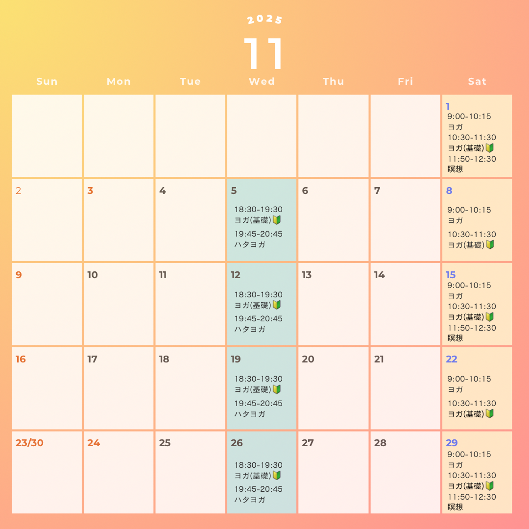 11月のスケジュールです、どうぞよろしくお願いします。