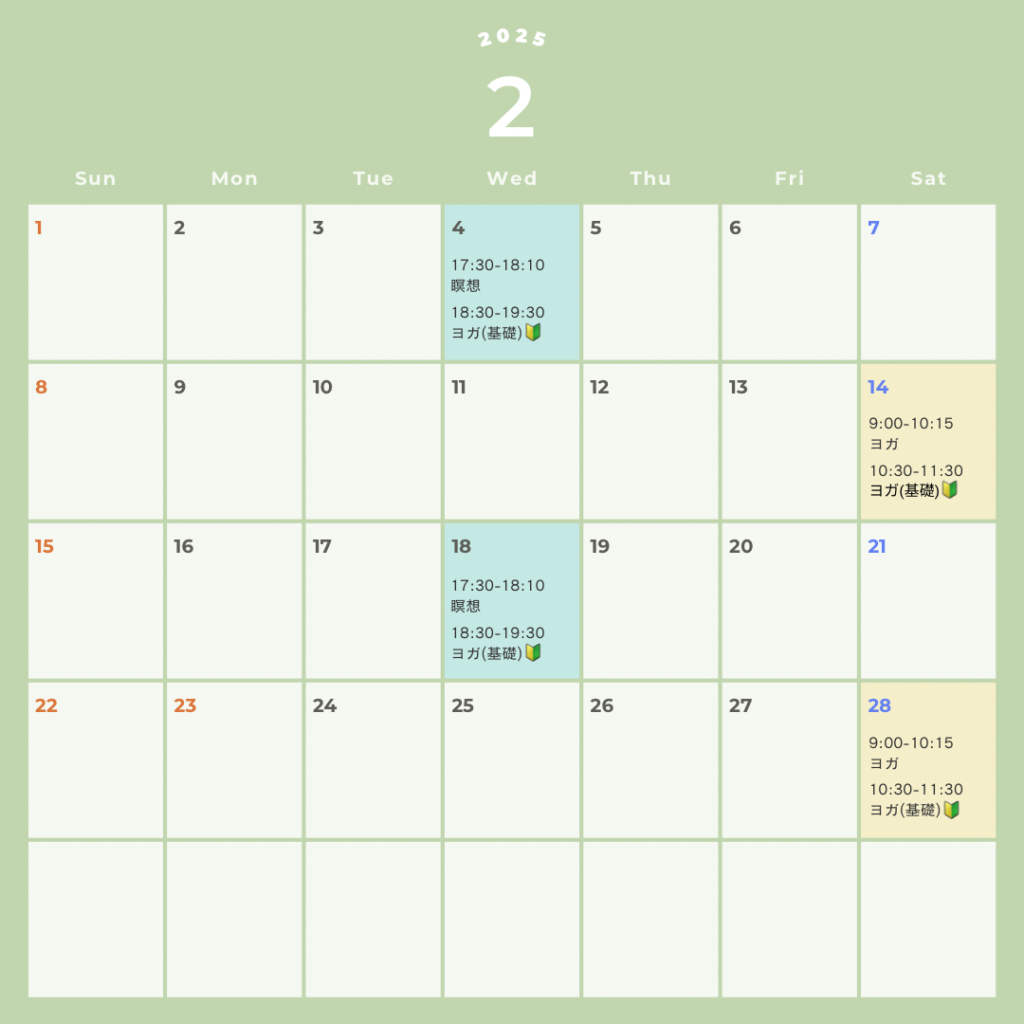 12月のスケジュールです、よろしくお願いします。 水曜クラスの時間が変更になります。17:30〜に瞑想18:30〜はそのままです☺️ 土曜クラスはいつも通りでございます。 今週から急に冷えますので、みなさんも体調に気をつけて、温かくしてお... -